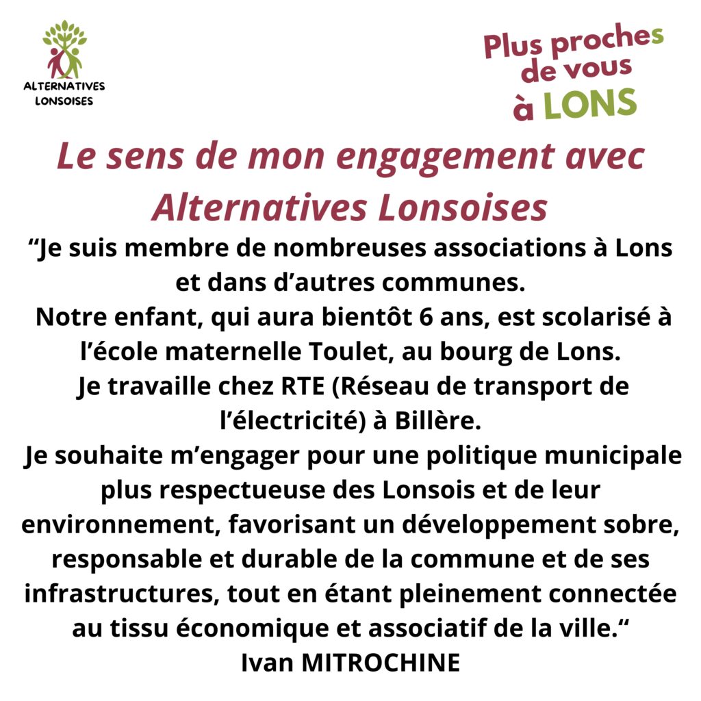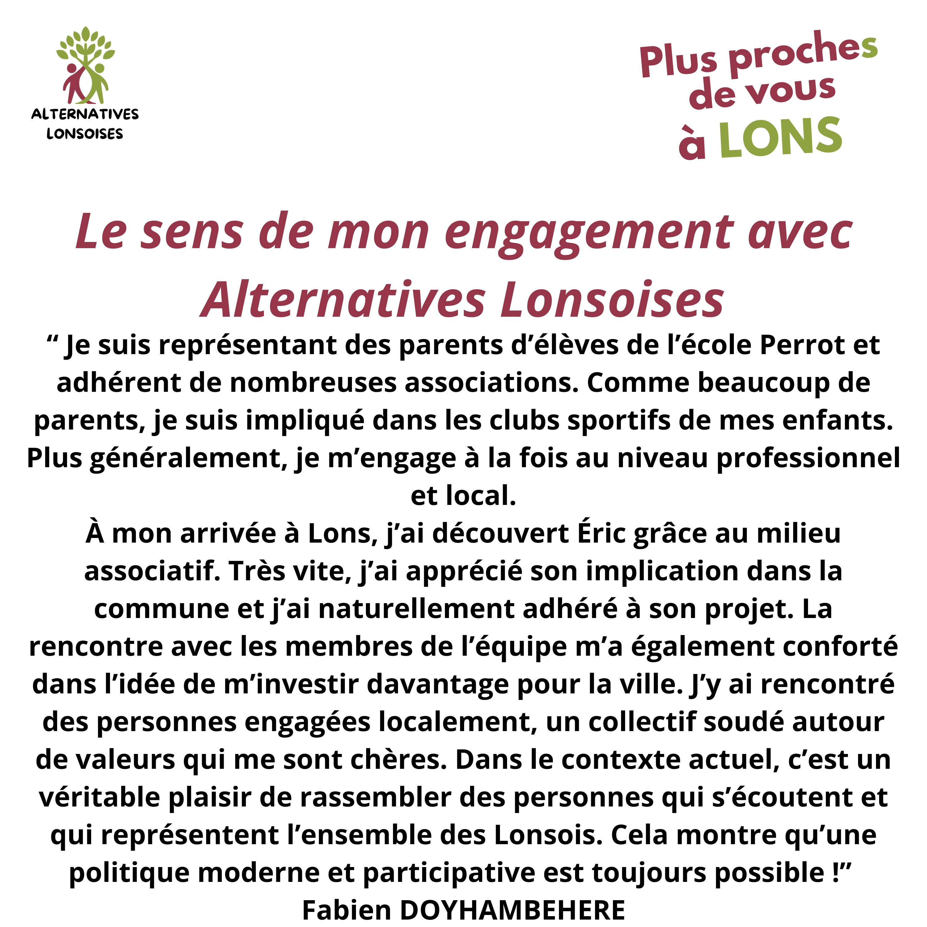 Certains Lonsois me connaissent aussi comme conseiller municipal et conseiller communautaire de l’agglomération paloise. Depuis six ans, je suis la voix des Lonsois, votre voix ….